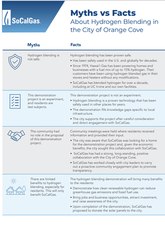 SoCalGas values its role in the Orange Cove community and is committed to being a good neighbor. As we continue striving to deliver natural gas in a safe, reliable, and affordable manner, we remain committed to transparency with the community regarding our proposed hydrogen blending demonstration project.